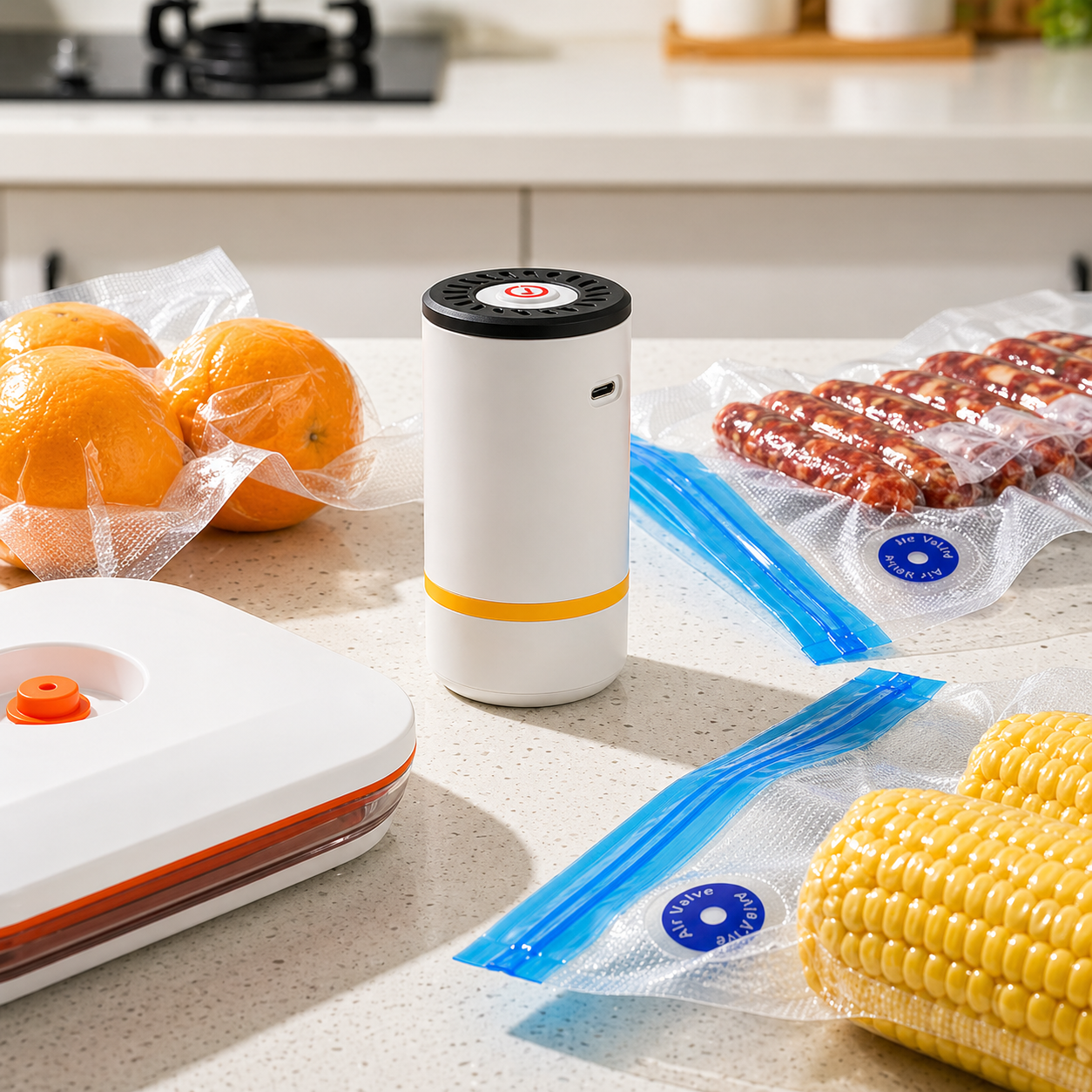 Keep food fresh for longer with this compact, rechargeable vacuum sealer. Designed for easy, hassle-free use, it removes excess air to preserve the freshness of vegetables, fruits, meats, and snacks.